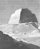 отесывая, вернее оббивая их шарами из диорита, выверяя ровность граней с помощью угольников и тростей из бронзы. Даже в частично разрушенном виде ступенчатая пирамида в Медуме остается блестящим примером создания архитектурного объема, необычайно надежно стоящего на земле и словно вырастающего из своего основания. Ощущение несокрушимой устойчивости создано безошибочно.