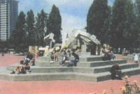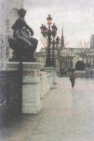 Пространство города пребывает в непростых отношениях с толпой. В новой части города, в связи с бедностью зрительной информации, только искусственными "островами" фонтанов удается оживить пустые пространства, притянуть к себе людей (вверху - Сан-Франциско). В древнем городе даже одинокий прохожий создает ощущение активного человеческого присутствия - ему вторят скульптуры и тени истории (Париж). В совсем новых кварталах присутствие человека приходится удваивать средствами скульптуры или настенной живописи.
