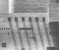 Тысячи лет эту конструкцию повторяи! вновь и вновь, закладывая толстый деревянный брус - перемычку - прямо в кладку стены, над дверным и оконными проемами, и укладывав следующие ряды кладки прямо по дереву. Однако в крупных, значительных постройках будь то дома вождей или ранние храмы, чувство гармонии и порядка подталкивало мысль к тому, что непристало в мощной фронтальной стене делать узкий проем и скромную дверь. Значит, нужны были тяжелые двери (заодно способные выдержать удары, ибо там было что и от кого защищать), а их удержать в деревянном футляре было бы невозможно.Соответственно, они догадались уложить над проемом мощную каменную балку, с чего началась уже совсем новая глава истории зодчества.