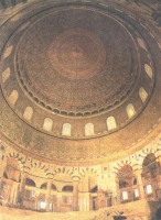 Архаичный деревянный купол Золотой мечети в Иерусалиме сохраняет без из менений свою сакральную функцию, служа пологом над скалой, с которой Магомет был вознесен на небо. По отношению к этому смысловому ядру прочие пространства мечети служат обрамлением.