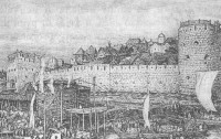 укреплений не мог не принять участие Фьораванти, имевший огромный опыт реконструкции всех старых замков Ломбардии и уже знакомый с артиллерией. Мы не знаем, когда точно он начал возводить первый в Москве Пушечный двор, но, коль скоро мастер уже заведовал артиллерийским обозом в походе 1478 г. на непокорный Новгород, то, думается что не позднее 1476 г. Первый двор для отливки пушек был устроен в непосредственной близости от Кремля, рядом с Арсенальной башней. Место это не случайно, ведь для того, чтобы запустить воду в ров, который шел по Красной площади вдоль стены (а этот ров изображен на "Годуновом чертеже"), нужна была плотина на реке Неглинной. Было логично заставить воду работать, так что здесь же были и мельницы. Большего мы не знаем, но старинные итальянские образцы, которыми руководствовался Фьораванти, известны превосходно.