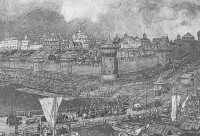 Есть основания полагать, что все работы над генеральным решением крепости были завершены в 1483 г., но на следующий год происходит финальная в жизни болонца катастрофа. Уже в критическом 1480 г. во всю силу проявилась неприязнь духовенства, а может, и боярства к Софье и ее окружению, а к нему несомненно причисляли и Фьораванти. В "Повести о стоянии на Угре" есть любопытный фрагмент, в современном переводе звучащий так: "В ту же зиму вернулась Великая княгиня Софья из побега, ибо она бегала на Белоозеро от татар, хотя никто за ней не гнался... Были же и жены их там, ибо возлюбили они больше жен, нежели православную христианскую веру... Это мы писали не для того, чтобы их укорять, но да не хвалятся неразумные в безумии своем, говоря: "Мы своим оружием избавили Русскую землю"...