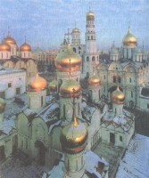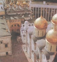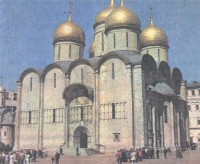 На пути осуществления замысла было тем не менее одно препятствие - небольшая церковь Ризположения. Снос церковного здания не был чем-то из ряда вон выходящим, но эта церковка стояла на дворе митрополита! Столкновение было неизбежно. Византийская традиция, воспроизведенная Ярославом Мудрым в Киеве и Андреем Боголюбским в его резиденции под Владимиром, толкала к тому, чтобы считать собор частью дворца. Местная московская традиция, закрепившаяся в период слабости князей, бывших вассалами Орды, требовала прямо противоположного. Собор не должен быть связан с дворцом, и князю надлежало довольствоваться устройством отдельного западного входа. Иван III еще не был настолько силен, чтобы навязать свою программу, и впоследствии роль дворцового храма перешла к Благовещенскому собору, сразу же связанному с галереями с теремным дворцом.