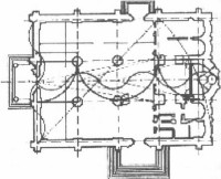 Здесь много непонятного. Думается, что с подмастерьями Фьораванти все же быстро нашел общий язык - и не только потому, что были переводчики, но потому, что речь шла о множестве предметов, явно знакомых обеим сторонам. Наглядные рисунки-наброски, прямой показ, прямое указание на предметы и взаимное выяснение их названий должны были помогать. Сложнее было с уяснением природы задачи, и потому стало бы ошибкой видеть в сооружении, которое дошло до нас в почти неизмененном виде, результат воплощения изначально ясной идеи. Куда разумнее исходить из того, что результат вырос в процессе тяжкого преодоления неоднократно возникавшего недопонимания с обеих сторон. Прелюдия была проста, и лишь ее скорость поразила москвичей: "Три дерева поставя и концы их верхние совокупив в едино и брус дубов обвесив на ужищи [цепи] посреди их поперек и конец его обручем железным скова и раскачающе разби". Вполне заурядный таран для разрушения стен вызвал изумление: "Чюдно видети, - констатировал летописец, - еже три года делали, во едину неделю и меньше развали". Несколько дней, и следа от руин не было, значит, и сравнивать работу Фьораванти с работой предшественников было теперь уже невозможно. Самостоятельно ли архитектор подменил образец - план собора во Владимире совершенно несходным планом, или за этой подменой скрыта еще и смена митрополичьего заказа княжеским? Точно это неизвестно, но летопись донесла одну важную характеристику задания: строить "полатным образом", т. е. просторнее внутри. Мы увидим, что за этими скупыми словами скрывалось нечто большее.