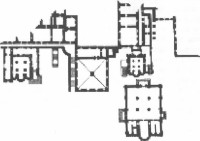 И в княжеском, и в митрополичьем проектах идеальным образцом мог быть никак не греховный "латинский" Рим, а утерянный Константинополь. Но ведь в Византии император был самодержцем и диктовал свою волю самой церкви, хотя и с некоторой оглядкой. Соответственно княжеский проект несомненно предполагал, что Успенский собор должен был быть напрямую соединен с еще только задуманным каменным дворцом, по второму этажу - с выходом на хоры, т. е. над всеми, кто был в церкви. Над паствой и над священнослужителями, не исключая и самого митрополита. Так некогда и было на Руси - во Владимире. Если вглядеться в обмерный план дворцового комплекса московского Кремля XVIII в., выполненный Д. Ухтомским, то схема связей прослеживается вполне ясно. Половина покоев Великого князя, простиравшаяся вдоль Соборной площади; половина Великой княгини (под прямым углом к ней), общие для них сени и от них галерея на хоры Успенского собора.