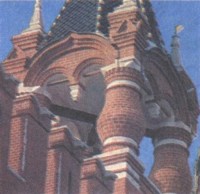 Логика ренессансного мышления не была, да и не могла быть воспринята в Москве XV в. Заимствоваться могли лишь новые декоративные детали: алмазная грань руста, капители, раковины, наконец, особо полюбившаяся "гирька", свисающая с арки.