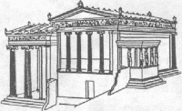 Исследователи уже давно избрали для обсуждения Парфенона в Афинах эффектный прием сопоставления его с храмом Зевса в Олимпии, законченным в 457 г. до н. э., или всего за 10 лет до начала строительства на Акрополе. Храм был особо знаменит, так как в его целле была помещена статуя работы того же Фидия. Филон, прозванный Византийским, дал Парфенону следующую, очень звучную характеристику, "соответствующий правилам видения, и очевидным образом сгармонирован-ной формы". До настоящего времени слова Филона готов повторять всякий архитектор. Последующим авторам оставалось только облегчавших и изрядно упрощавших ведение строительных работ.