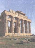 Почти в то же время, что четвертый храм Геры на Самосе, воздвигается колоссальный храм Аполлона в сицилийском Селинунте. Схема принадлежности божеству нарушена, но дело в том, что италийский запад греческой Ойкумены, независимо от культа, признает только дорику. По всей видимости, это было подражание огромным ионийским храмам, уже сооруженным в Эфесе и Дидиме, но настолько оригинальное подражание, что наше внимание сосредоточено, естественно, не на сходствах, а различиях. Различий такого рода более чем достаточно.Мощный периптер (18x8 колонн) стоит на двухступенчатой платформе с габаритами 110x50 м, и верх его антаблемента приходится на отметку 24 м над платформой." Глубина бокового портика удивительна (почти 13м, что не допускало иного перекрытия, кроме деревянных прогонов), она почти равна ширине целлы. Совершенно очевидно, что основанием для такого решения служило желание добиться эффекта широкого фасада, а не утилитарные соображения. Странен второй, внутренний портик - вместе с целлой он приподнят еще на две ступени относительно общего основания. Удивительна и композиция целлы: внутри она содержит маленькое святилище, к которому ведет двухъярусная дорическая колоннада. Большинство специалистов сходятся на том мнении, что боковые нефы длинной целлы были перекрыты с уклоном балок внутрь, так что центральный неф оставался внутренней "галереей" под открытым небом.Перед нами - полный дорический ордер, с сильными триглифами и квадратными метопами, и в целом создается впечатление художественной ошибки. Без существенных корректив в пропорциях обычный к тому времени храм был механически увеличен почти в два раза. Так и есть, более того, это вполне понятно, ведь освоение связи между размерами и масштабностью сооружения относится к уровню высокого мастерства, до которого VI в. еще не поднялся. Однако интересно здесь другое: незавершенный храм строился около 70 лет до разгрома, учиненного карфагенянами, и анализ его ордера дает замечательный пример эволюции форм и колонны, и капители.