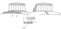 Вторая важная для нас особенность решения Иктина - это введение курватур или незначительных выгибов горизонталей, уклона вертикалей, уширение интерколумниев и утолщение колонн в углах здания. Курватурам посвящена целая библиотека, и, начиная с Витрувия, вернее, с его греческого источника, закрепилась традиция, согласно которой они трактуются как средство компенсации якобы неизбежного провисания горизонталей в зрительном восприятии. Это, однако же, мало правдоподобно. У нас огромный опыт зрительного восприятия весьма протяженных горизонталей, но провис не наблюдается. Напротив, натренированный глаз обычно спрямляет неточности, легко руководствуясь известным психологам правилом "хорошей формы". Более того, курватуры Парфенона (во всяком случае, в отношении крепидомы, т. е. основания) весьма заметны - при взгляде вдоль оси бокового портика они вполне отчетливо просматриваются как скругления поверхности. Хотя курватуры и встречаются в нескольких еще постройках, в римскую эпоху к ним никогда не возвращались, хотя старательно сохраняли при реконструкции и достройке нескольких малоазийских храмов.