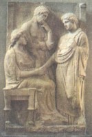 В вазописи - плеяда удивительных художников, обладающих легко опознаваемым персональным почерком. Вот почему можно и должно говорить о мастерстве! Ексекий -чернофигурная роспись (это ему принадлежит знаменитая сцена "Ахилл и Аякс, играющие в кости"); Евфроний - краснофигурная роспись (среди прочего, чудная "Весна с ласточкой" из Эрмитажа). Евтимид, столь свирепо соревнующийся с Евфронием, что на вазе, хранящейся в Глиптотеке Мюнхена, можно прочесть: "Евтимид, сын Полиаса, написал так, как никогда не мог написать Евфроний..." Одно перечисление имен заполняет многие страницы в энциклопедических справочниках, и созданного в V в.до н. э. хватило на долгие века копирования и подражания.