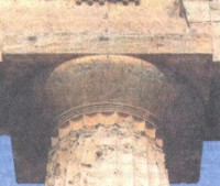 Первые капители имеют широкий, сильно сплющенный эхин с огромным (примерно 1 м) выносом, сознательно еще усиленным за счет сильной выкружки шейки. Капители второго поколения имеют более крутой угол наклона "подушки" и меньшую выкружку. У капителей третьего поколения еще более крутой угол, усиленный рельеф шейки, тогда как выкружка отсутствует. Ствол колонны в месте его перехода к капители столь же последовательно утолщается, и если в самых ранних колоннах каннелюры завершают свой бег вверх по стволу, теряясь в выкружке (капитель тут была сознательно отторгнута от ствола), то в последней по времени вариации ребра каннелюр отгибаются наружу и совершенно органично охватываются шейкой, как обручем.