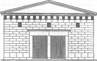 Совершенно элементарное по планировке и конструкции здание примечательно прежде всего тем, что здесь триглиф, характернейший элемент дорического ордера, обособляется от привычного местоположения в антаблементе. У ряда триглифов откровенно знаковая роль -придать больше достоинства зданию, которое трактовалось всеми афинянами не только как техническое помещение, но также и как демонстрационный Зал Славы, — недаром в длинной надписи указано, что проход между столбами предназначен для посетителей. Важнее, однако, самого сооружения для нас свидетельство Витрувия, что "Филон выпустил книгу о соразмерности священных храмов и об арсенале, который находился в гавани Пирея".