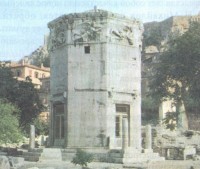 "Башня ветров" у подножия афинского Акрополя - помещение для водяных часов - клепсидры. Это одно из немногих сооружений античности, дошедших до наших дней почти без повреждений.