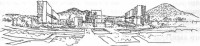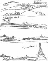 И в беглых путевых зарисовках и в эскизах к проекту т.н. Лучезарного города Ле Корбюзье тяготел к выявлению основного каркаса соотношений форм. Лаконичные и резкие комментарии к рисованным схемам обеспечили чрезвычайную популярность тезисов Ле Корбюзье при всей их догматичности.