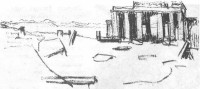 "Парфенон сохранился, поврежденный, но не разрушенный, и вот: поищите на колоннах, обработанных каннелюрами и состоящих по высоте из двадцати блоков, стыки между ними - не найдете; проведите ногтем по колоннам в тех местах, где патина на мраморе немного различается по цвету, ибо налет времени оставляет на разных кусках мрамора разные следы, — ноготь ничего не почувствует. Собственно говоря, стыка нет, и жилковатые ребра каннелюр продолжаются на всю высоту, будто выдолбленные в монолите!