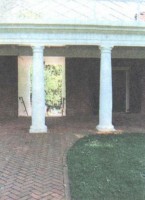 Ограда и две приворотные будки для жилища привратника служащие, сделаны особым образом от прочего строения. Они построены из четвероугольных земляных глыб, сбитых в станке во время дурной погоды, и известью в стене соединены. Внутренняя сторона оных оштукатурена обыкновенною обмазкою, а наружная оставлена без всякой штукатурки, для показания швов, коими соединены земляные камни.