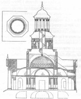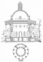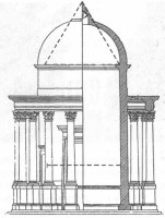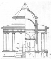 И вновь сходство совсем исчезает, когда обнаруживаешь, что этот купол поддержан кольцевой колоннадой прекрасных пропорций.