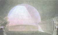 Напротив, в работах Этьена-Луи Булле мы распознаем первые шаги понимания творчества в архитектуре как только и исключительно формотворчества, комбинаторной игры в условном пространстве графического листа. С его работ эта игра продолжается до нашего времени без заметных изменений правил. Тема фантастического или, как его еще называют, утопического проектирования нас здесь не занимает, но важно видеть, сколь существенноезначение приобретает процесс "чистого" проектирования в только еще нарождающейся архитектурной школе.