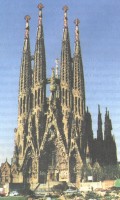 При этом, хотя пластика зданий кажется совершенно произвольной, у этих домов великолепно разработанная внутренняя структура, хотя и чрезмерно жесткая, так что обитатели домов сдержанно ропщут, пытаясь расставить в комнатах обычную мебель, но также и гордятся тем, что на их дом невозможно не обратить внимание. Кстати, для того чтобы придать стенам и балконам дома Мила (сразу прозванного барселонцами "каменоломней") сложные, прихотливые, неповторяющиеся криволинейные очертания, Гауди использовал гидравлические прессы барселонской верфи, где стальные двутавры выгнули согласно рисунку архитектора. Наконец, сначала построив небольшую капеллу Св. Коломбы, где Гауди словно заново сочинил "готику" так, как если бы подлинной готики, восходящей к аббату Сюгеру, никогда не существовало, архитектор принялся за сооружение кафедрального собора Св. Семейства. Как Сюгер восемью веками ранее, Гауди успел возвести один только грандиозный фасад - с его порталами и башнями, скульптурное богатство которых категорически не поддается определению с помощью готовых понятий. Этот массив, высящийся над городом уже почти сто лет, существует как некая вещь в себе, существует столь мощно и властно, что городу не остается ничего иного, как шаг за шагом продолжать воплощение замысла одинокого гения по имени Антонио Гауди.