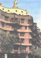 С финансовой точки зрения эта затея совершенно провалилась, и в единственных двух домах комплекса жили сам Гуэль и его архитектор. Зато возник ни на что не похожий природно-скульптурный комплекс, с его древоподобными деревьями виадука, его "бесконечной" скамьей, его неожиданной "дорической" колоннадой, да еще и домиком привратника, превратившимся в сказочную обитаемую скульптуру. Еще два доходных дома в Барселоне - дом Баттло и дом Мила - и вновь словно два взрыва совершенно неуемной фантазии. В доме Баттло Гауди словно вылепливает колонны и эркеры фасада из податливого воска, придает балконам форму стилизованных масок с пустыми глазницами и выгибает черепичную кровлю как хребет дракона.