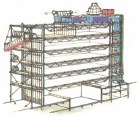 Между индивидуальностью архитектора и претензией корпоративного руководства на собственный имидж всякий раз развертывается сложное состязание. Тем более сложное, что корпорации, как правило, прибегают к услугам специальных консультантов по имиджу, прежде чем рискнуть остановить свой выбор на том или ином персональном "стиле" архитектурного бюро. Чем в большей степени государственная, муниципальная или частная корпорация стремится подчеркнуть свою устремленность в будущее, тем больше возникает шансов у супермодернистского предложения. Именно по этой причине в Париже был построен Центр искусств имени Помпиду - после многих десятилетий отставания от США, Германии или Японии Франция стремилась подчеркнуть свою программу национального обновления.