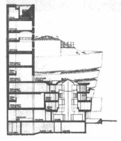 Справедливости ради следует заметить, что если Ле Корбюзье уговаривал себя и других, что о таком здании он мечтал 30 лет, вопреки очевидности связывая "Юните" со своими же идеями прошлого, то Райт неоднократно высказывал истинную цель своей работы -соорудить памятник самому себе. Во всяком случае, устно, как свидетельствуют биографы, он повторял, что если в Нью-Йорке взорвется атомная бомба, то его здание едва шелохнется... Заметим сразу же, ничто не роднит здание этого музея с принципами "органической архитектуры". Оно не вырастет из земли, оно противостоит окружению и отгораживается от него. Общим остается лишь почерк Райта -самодостаточность архитектурной формы,наметившейся уже в доме Кауфмана ("над водопадом") и обостренно выразившейся в поздних проектных работах.