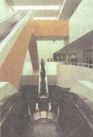 Да, самодостаточная форма, и потому от дирекции музея потребовалась виртуозная изобретательность, чтобы относительно пристойным образом организовать в нем экспозицию. Первоклассная абстрактная скульптура, к тому же динамическая по визуальному эффекту, что так привлекло госпожу Гуггенхейм. При этом выходящие на фасад офисы темны и мрачны, нет возможности ни отойти от картины, ни подойти к ней вплотную, в глаза зрителю бьет поток света из "щели", что над экспозиционным фронтом. Болынеразмерные полотна следовало бы предварительно выгнуть, чтобы поставить их на место, экспозицию всегда можно сделать только по одной схеме...