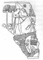 Много раньше хорошо известного изображения жреца с мерными тростями на деревянном рельефе на булаве слоновой кости времен еще додинастического Египта можно разглядеть землемерный инструмент.
