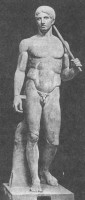Поликлет, после Фидия наиболее известный из греческих скульпторов классического периода, создал две статуи атлетов: Диуадумена и Дорифора, или копьеносца. Обе фигуры в равной степени являются скорее четким выражением метода, чем проявлением чистого художественного замысла. Поликлету приписывают суждение: "Прекрасное произрастает помалу, посредством множества чисел". Действительно, все элементы фигуры связаны единой цепочкой мер, в основании которой можно обнаружить фалангу указательного пальца. Неудивительно, что во время безраздельного господства Академий статуи Поликлета были воплощением идеи канона, и рисование с них было обязательным.