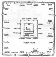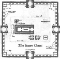 И вот вне храма стены со всех сторон его, и в руке того мужа трость измерения в шесть локтей, считая каждый локоть в локоть с ладонью...А в площадке 14 локтей длины и 14 ширины на все четыре стороны ее, и вокруг нее пояс в пол-локтя, а основание ее в локоть вокруг...