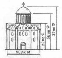 Принимая во внимание относительно высокую скорость, с какой завезенная византийская традиция в архитектуре и в церковной живописи преобразилась в местную, русскую, разумно ожидать того, что самые древние церкви на Руси должны в точности воспроизводить и византийские меры. В более поздних храмах должен был рывком произойти переход к такой же, по существу, системе освященных книгами, но уже местных мер.