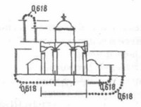Только теперь нам до конца становятся понятны «вавилоны» - странные, на первый взгляд, геометрические фигуры, выдавленные на поверхности плинф до обжига. Вавилон -это и есть «чертеж» храма, прямо восходящий к старому византийскому канону соотнесения подкупольного прямоугольника, нефов и обводов внутреннего пространства всего храма.
