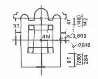 Наконец, помимо всех перечисленных мер, была еще и особая, только в строительстве применявшаяся «сажень без чети», равная 197 см, что представляет собой диагональ полуквадрата со стороной в мерную сажень -176 см : 197 см = 0,893, или 2: V5 - диагональ двойного квадрата, немедленно отсылающая нас и к египетской, и к греко-византийской традиции.