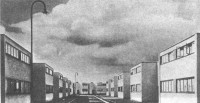 Проектирование рабочих поселков из сборных конструкций пошло полным ходом. Везде - бетон, металл, дерево, стекло, хотя временами приходилось делать уступку и штукатурить кирпич «под бетон», чем были заняты и советские конструктивисты. Цвет был изгнан за его буржуазность, и допускались только белый и бежевый с редкими вставками черного или серого. Настолько строго, что, когда Бруно Таут, член группы основного конкурента Гропиуса, берлинца Миса ван дер РОЭ, представил свой проект рабочего поселка в Берлине с красными фасадами, даже это было сочтено буржуазным.