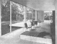 Ловушка, в которую попадали американские адепты глубоко персонального стиля Миса ван дер РОЭ, заключалась в том, что делать "как Мне" можно было единственным способом - точно его повторять. Филипп Джонсон (две нижних фотографии], впоследствии открывший в себе постмодерниста, начал свою карьеру практикующего архитектора с предельно точного воспроизведения всех признаков работ престарелого мастера. Джонсон настолько не сомневался в истинности такой линии профессионального поведения, что на упреки критиков отвечал, что ничего не имел бы против того, чтобы называться Мис ван дер Джонсон. Разумеется, столь крайняя форма пиетета могла иметь весьма недолгий век.