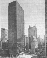 Классические постройки Миса вам дер РОЭ - комплекс Иллинойского технологического института, серия небоскребов в Нью-Йорке и в Чикаго - отличаются от коллективного продукта, каким было здание штаб-квартиры ООН. Однако только тонкий знаток в состоянии найти такого рода отличия в трактовке единой коробчатой формы сооружения. Для большинства наблюдателей зта задача и невыполнима, и лишена интереса. Они воспринимают исключительно тождество зданий-коробок: так обстоит дело сейчас, но точно так же оно обстояло и в 50-е годы. Различие лишь в том, что тогда публика дала себя убедить в том, что "интернациональный стиль" - это и есть вершина.