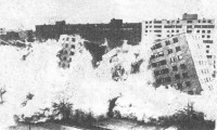 Как ни странно, подлинное крушение мифа современной архитектуры состоялось там, где этого ожидали в наименьшей степени. В 1955 г. в городе Сейнт-Луис был заселен крупный жилой район для бедноты, жившей по большей части на пособие по безработице. Новый микрорайон Прют-Айгоу, построенный архитектором Минору Ямасаки в точном соответствии с принципами современной архитектуры, как их сформулировали Ле Корбюзье и его бесчисленные последователи, был признан лауреатом премии Института Американских Архитекторов. Описывать этот микрорайон нет никакой необходимости, так как жителю любого крупного российского города достаточно выглянуть в окно, чтобы в бесконечности 12-ти- и 16-этажных зданий увидеть его точное подобие. Отличие было лишь в том, что в 14-ти этажных домах Прют-Айгоу были устроены сквозные коридоры7 (некогда Ле Корбюзье назвал их "улицами в небе"), которые почти мгновенно превратились в сочетание нелегального кабака и даже не деревенской, а слободской "улицы".
