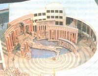 Чарльз Мур приобрел почти скандальную известность своей работой над Пьяцца Италия в Новом Орлеане (внизу). Подобие декорации монументальной киноэпопее Фрэнка Копполы ("Крестный отец") очевидно всякому. Однако позднее Мур перешел к гораздо более спокойным работам (слева/, вроде завершенного уже в 90-е годы общественного центра города Беверли Хиллз, входящего в состав графства Лос-Анджелес.