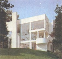 Итак, в 1954 г. Эдвард Стоун неожиданно для всех создал проект посольства США в Дели. Сам архитектор любил называть свое детище "Тадж Мария", связывая воедино признание в любви к жене и симпатию к архитектуре мавзолея в Тадж-Махале. Здание с его орнаментальными решетками, золочеными листьями капителей на стальных колоннах, криволинейными очертаниями внутреннего двора! Возмущение "предательством" Стоуна в среде верных сыновей современной архитектуры было тем большим, что именно он, в 1933 г., был первым американским архитектором, построившим жилой дом в штате Нью-Йорк "в интернациональном стиле". После этого именно Стоуну было доверено строительство нового здания Музея Современного Искусства на Пятой авеню в Нью-Йорке, ставшего материализованным лозунгом стиля. Теперь же "предатель" был буквально подвергнут анафеме — хорошо отозваться о постройках Стоуна значило бы для критика-еретика конец публицистической карьеры.
