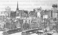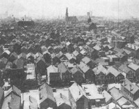 Позже стали возводить другие дома, оказавшиеся еще хуже, так как в них спальни обычно не имели ни окон, ни вентиляции. Только в 1879 г. был принят закон о запрете дальнейшего строительства этих "экономных" жилищ, установивший, наконец, предельную плотность застройки участка. После конкурса на рабочее жилье начали строить дома с внутренними световыми шахтами, ограничив их высоту восемью этажами (с 1901 г. сократили до шести этажей), и таких домов было возведено несколько тысяч за сорок лет. К 1900 г. на Манхэттене насчитывалось 47200 подобных зданий, и в них обитали полтора миллиона человек из двухмиллионного населения острова. Как докладывала комиссия Департамента наемного жилья, обследовавшая рабочие кварталы в летнее время, "в маленьких комнатах, выходящих на световую шахту, настолько недостает воздуха, что часто вытаскивают матрасы на пол общей комнаты, и все семейство спит в одной комнате. Летом в этих комнатах так жарко и душно, что значительная часть населения дома спит на крыше, на тротуарах или на площадках наружных пожарных лестниц".