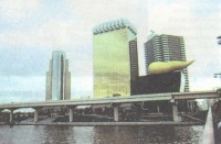 ... Стоя в стеклянной клетке наружного лифта на верхнем этаже отеля "Бонавантюр" в даунтауне (в этой-то клетке разыгрывался эффектный финал триллера с Клинтом Ист-вудом в главной роли) и оглядывая страну Эл-Эй в "зум" фотоаппарата, я заметил две странности. Одна - типичный десятиэтажный отель, почему-то вставший у самого фривея Голливуд (кто же по доброй воле там поселится?). Вторая странность - какие-то знаки на крышах зданий к востоку от даунтауна. Разобрать знаки было невозможно. Никто из знакомых не мог объяснить. Наконец, мне удалось вычитать, что "отель" — это всего лишь новый Metropolitan Detention Center, иначе тюрьма-изолятор для топ-менеджеров наркобизнеса и наркотерро-ризма. Невразумительные знаки на крышах оказались буквами и номерами, облегчающими патрульным полицейским вертолетам читать страну внизу как штабную карту (по слухам, знаки уже смыли).