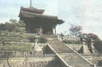 Киемидзу, куда я добрался сам, причем чуть с другой, менее коммерческой стороны. Страшное разочарование от керамики и прочих поделок. Настоящее ремесло есть, но нужно, чтобы кто-то привел к мастеру, и цены астрономические. Зато я забрался наверх как раз вовремя, чтобы видеть закат с террасы, о которой переводил когда-то из книги. Чтобы возвести эту террасу, пришлось поднять девять ярусов деревянных конструкций.