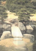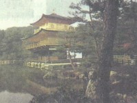 Храмовый комплекс Гинкакудзи. Густой "суп" из гимназистов, идти приходится сквозь череду фотовспышек: детки фотографируют исключительно друг друга одноразовыми камерами, и незаметно, чтобы они ощущали в себе какое-то сродство с творениями предков. Странноватый эффект конуса, призванного отражать лунный свет (позже становится понятно, что это - модель снежного усеченного конуса Фудзи, похожая на очень большой "куличик" из песка), прелесть вязки перекладин и бамбуковых грабель в форме веера для подметания мхов. Игра оттенков множества видов кленов.
