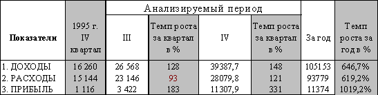 Динамика доходов и расходов в 1996 году представлена в таблице