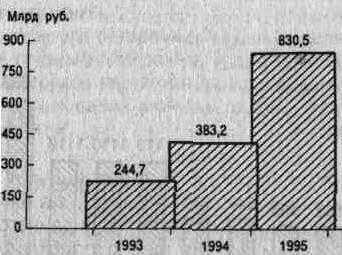 Рис. 9. Динамика денежных доходов населения в регионе за 1993-1995 гг.
