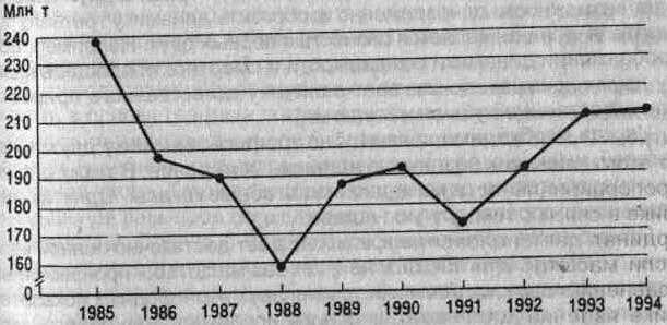 Рис. 18. Динамика валового сбора зерновых культур в регионе за 1985-1994 гг.
