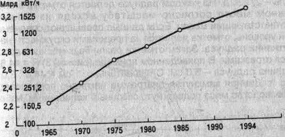 Рис. 22. Динамика производства электроэнергии в регионе за 1965-1994 гг.