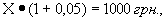 Для понимания сущности дисконтированной стоимости целесообразно провести аналогию получения дохода от использования приобретенного станка с процессом получения дохода от вкладывания денег в банк. В обоих случаях индивид должен решить для себя следующую проблему, какую сумму он должен потратить сейчас, чтобы через какой-то период времени (год, два, три) получить определенный доход, Рассмотрим ситуацию с банком: спрашивается, какую сумму вкладчик должен поместить в банк, чтобы через год получить 1000 грн.? Для ответа на этот вопрос необходимо знать процентную ставку. Пусть она равна 5 %. Тогда вкладчик должен внести в банк Х грн. и через год он получит с учетом 5 % годовых Х • (1 + 0,05) , а эта величина, по нашим условиям, и должна составлять 1000 грн. Отсюда мы найдем сумму первоначального вклада, т.е. ту сумму, которая при 5 % годовых даст вкладчику через год 1000 грн. Поскольку