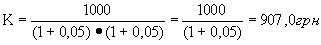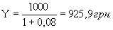 Например, если процентная ставка составит 8 %, то дисконтированная величина 1000 грн. при вкладе на один год равна: