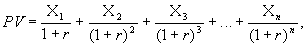 Отсюда можно сделать следующий вывод: дисконтированная стоимость РV любой суммы Х через определенный период t при процентной ставке r будет равна: